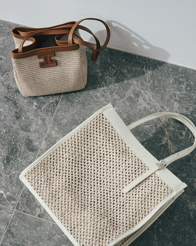 タンクトップとリブスカート、上下をニット素材のグレーで統一。同じ色味でも、編み地の質感を変えることでワントーンの中に心地よいリズムを。究極にシンプルだからこそ、素材の良さが際立つ、大人の余裕を感じさせる洗練された組み合わせ。